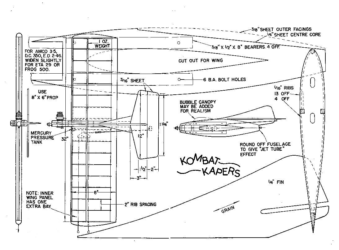 Having flown combat with the Bees as early as 1952, the publication of the Kombat Kapers in Aeromodeller in January 1954 provided the spur to take up this new form of flying in earnest. One problem was that the model was stronger than an Elfin 249 crankcase! However, this was welded up by Gig Eifflander and continued for many years.
